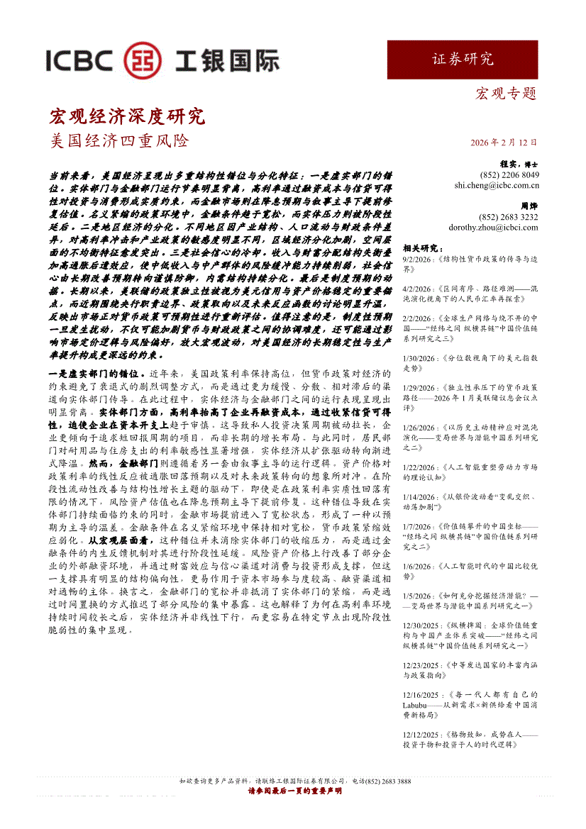 工银国际-宏观经济深度研究:美国经济四重风险-260212