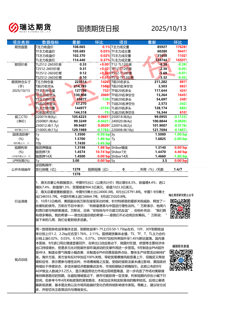 瑞达期货-国债期货周报:债市底部震荡,多头动能偏弱-251010