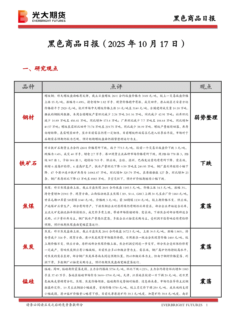 光大期货-光期黑色:铁矿石基差及价差监测日报-251016