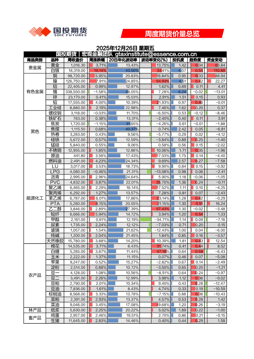 国投期货-周度期货价量总览-251226