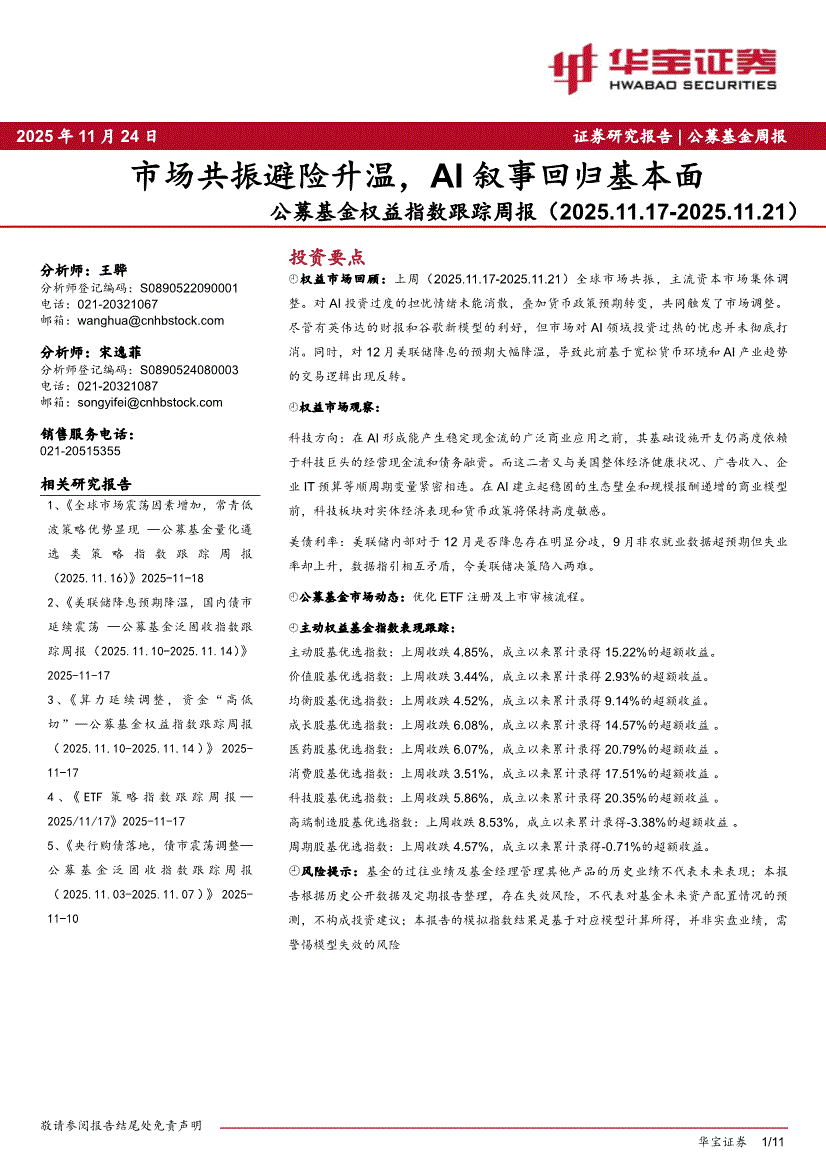 华宝证券-公募基金权益指数跟踪周报:市场共振避险升温,AI叙事回归基本面-251124