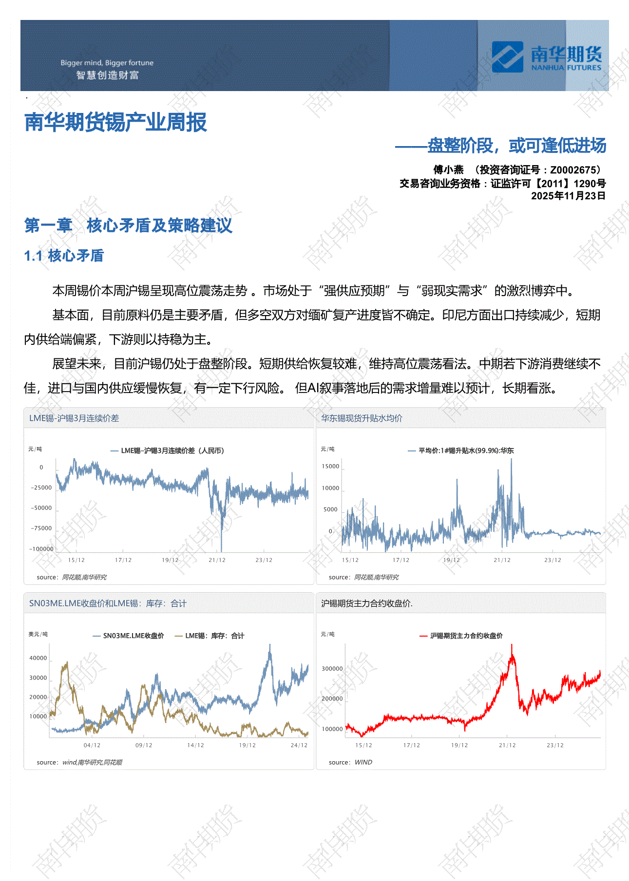 南华期货-锡产业周报:短期盘整,警惕下行风险-251116