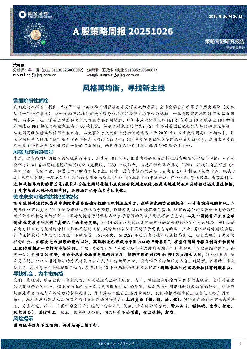 国金证券-A股策略周报:风格再均衡,寻找新主线-251026