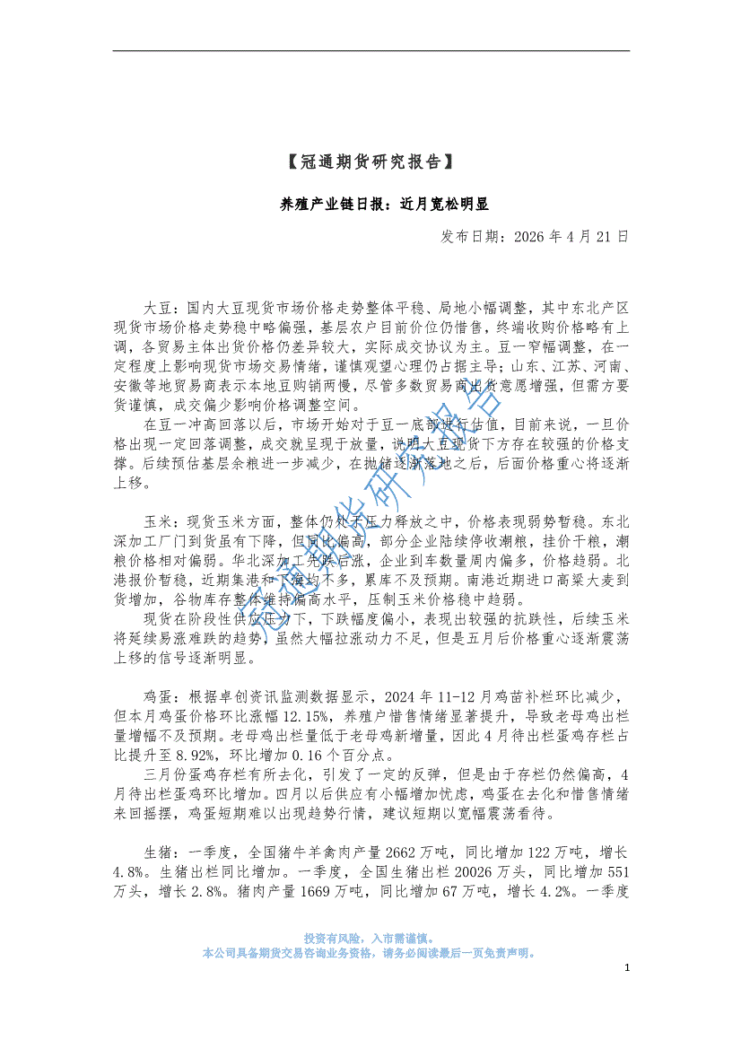 冠通期货-养殖产业链日报:近月宽松明显-260421