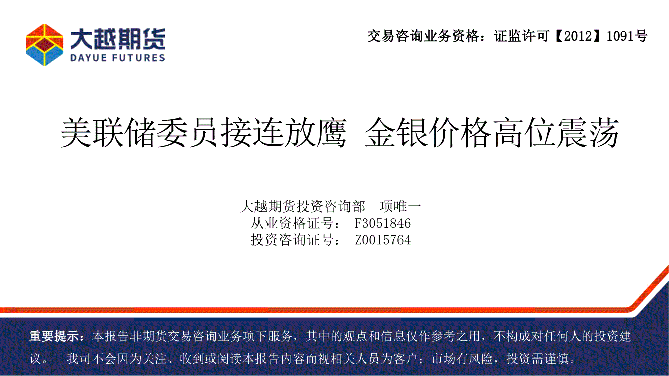 大越期货-美联储委员接连放鹰,金银价格高位震荡-251119