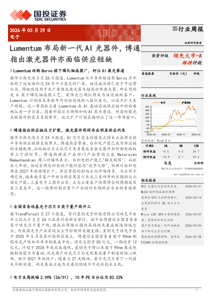 电子行业:国投证券-电子行业周报:Lumentum布局新一代AI光器件,博通指出激光器件亦面临供应短缺-260329