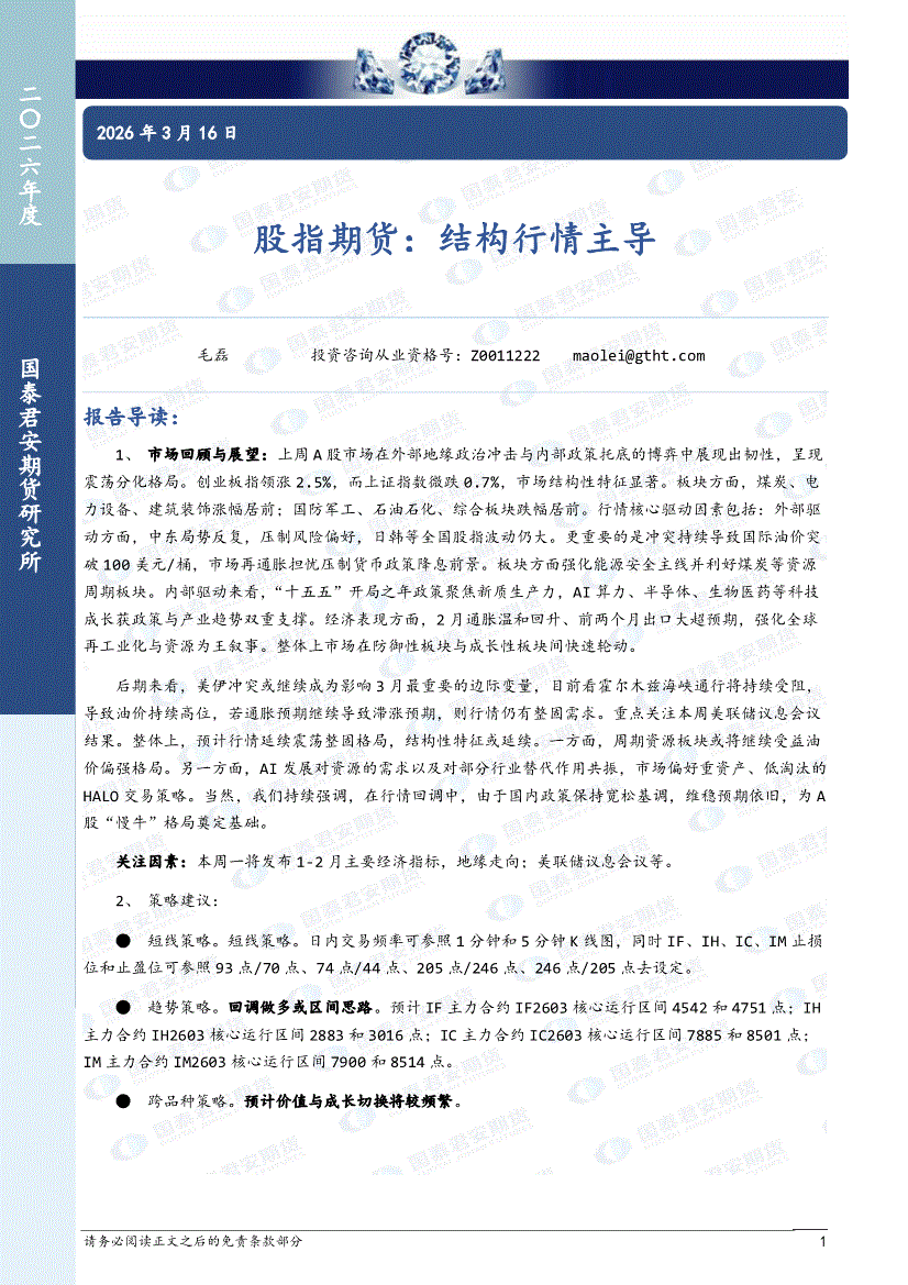 国泰君安期货-股指期货:结构行情主导-260316