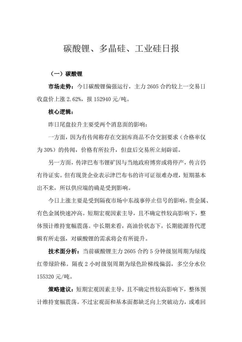 天富期货-碳酸锂、工业硅、多晶硅日报-260305