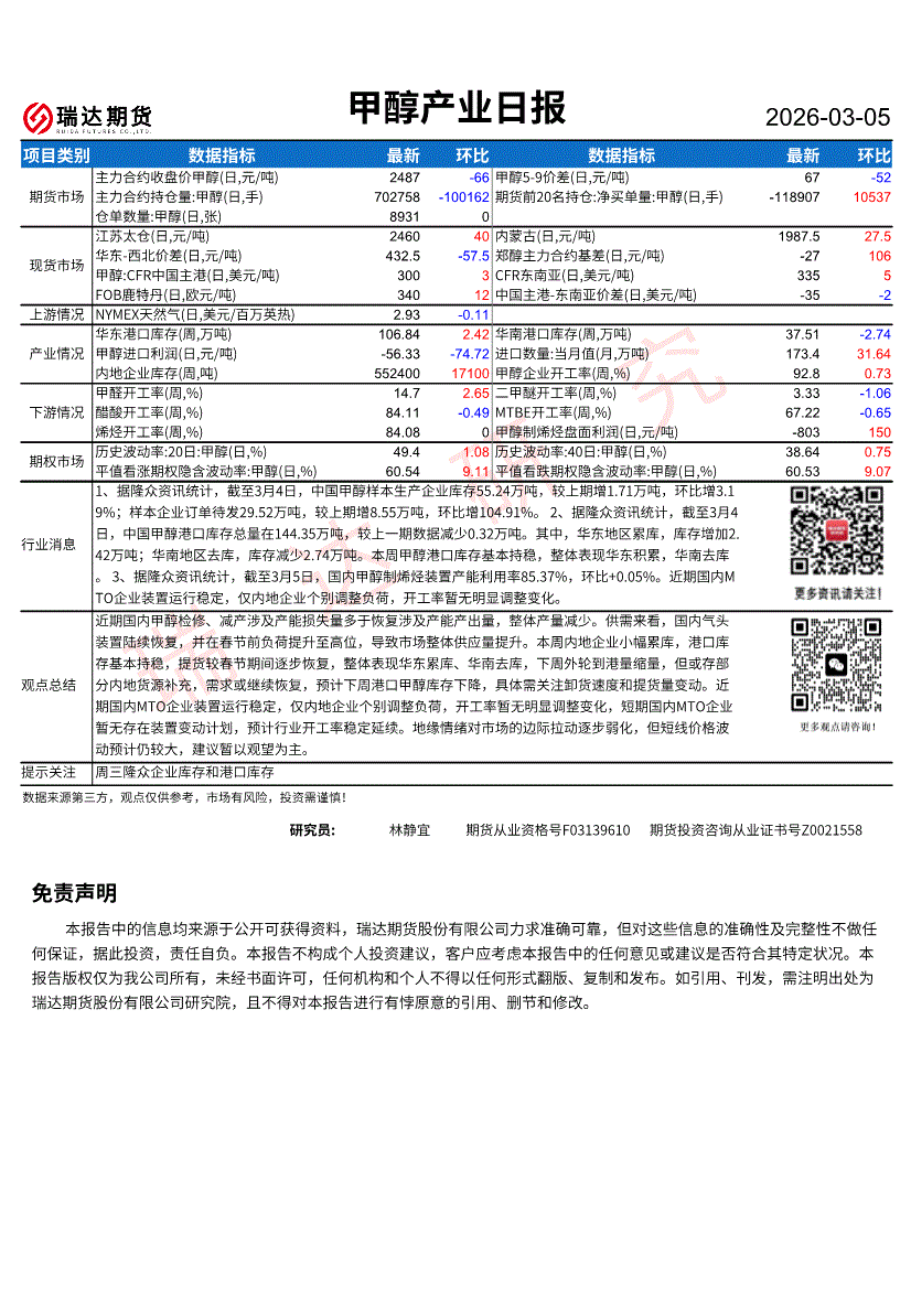 瑞达期货-甲醇产业日报-260305