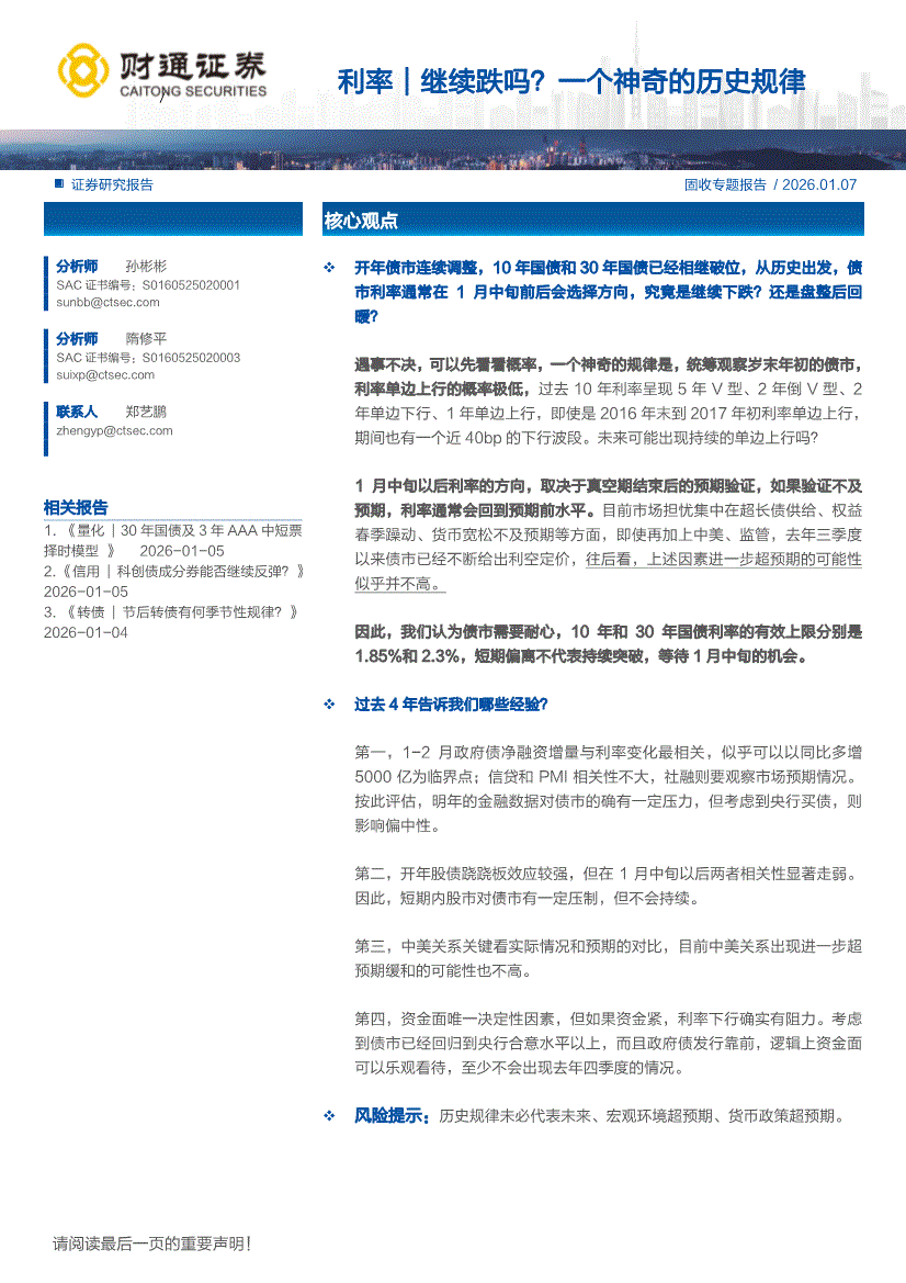 财通证券-利率|继续跌吗?一个神奇的历史规律-260107