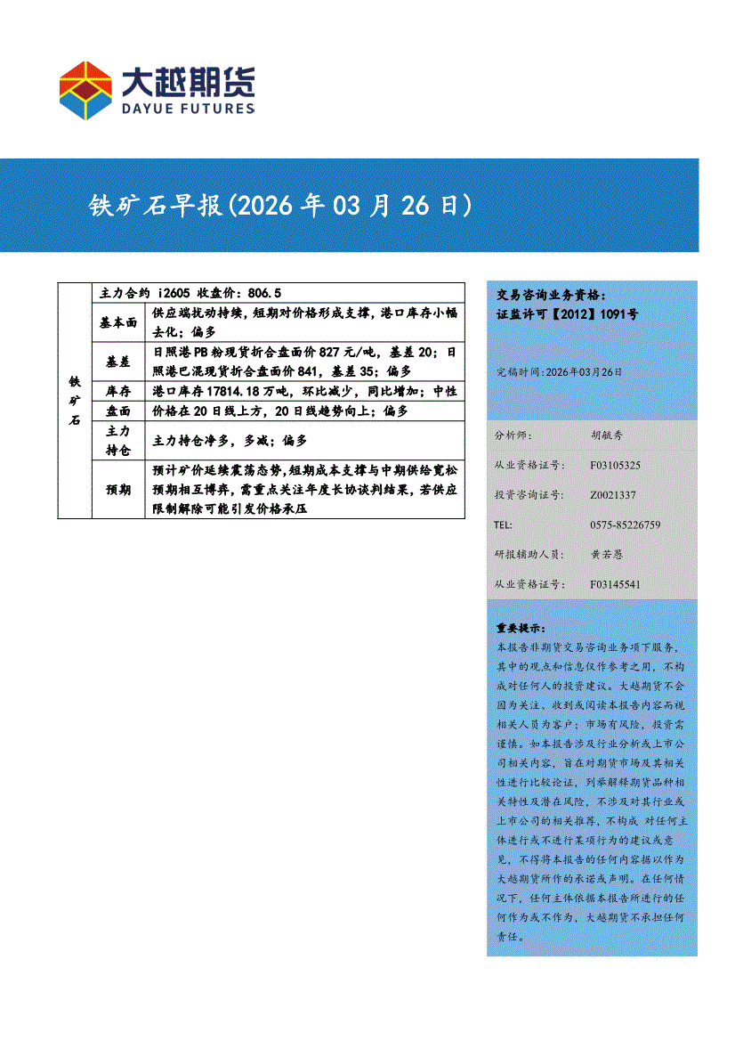 大越期货-铁矿石早报-260326