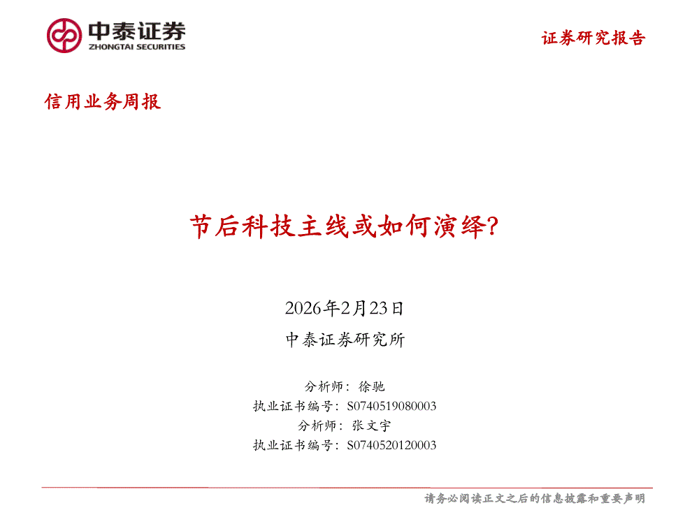 中泰证券-信用业务周报:节后科技主线或如何演绎?-260223