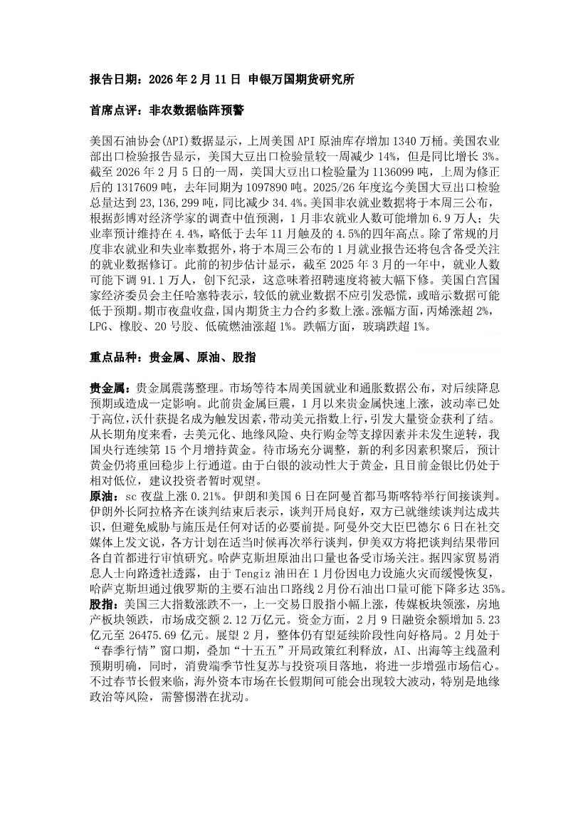 申银万国期货-早间评论-260211