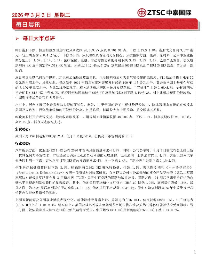 中泰国际-每日晨讯-260303