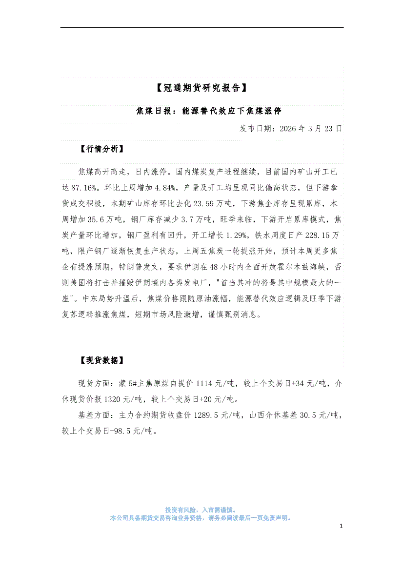 冠通期货-焦煤日报:能源替代效应下焦煤涨停-260323