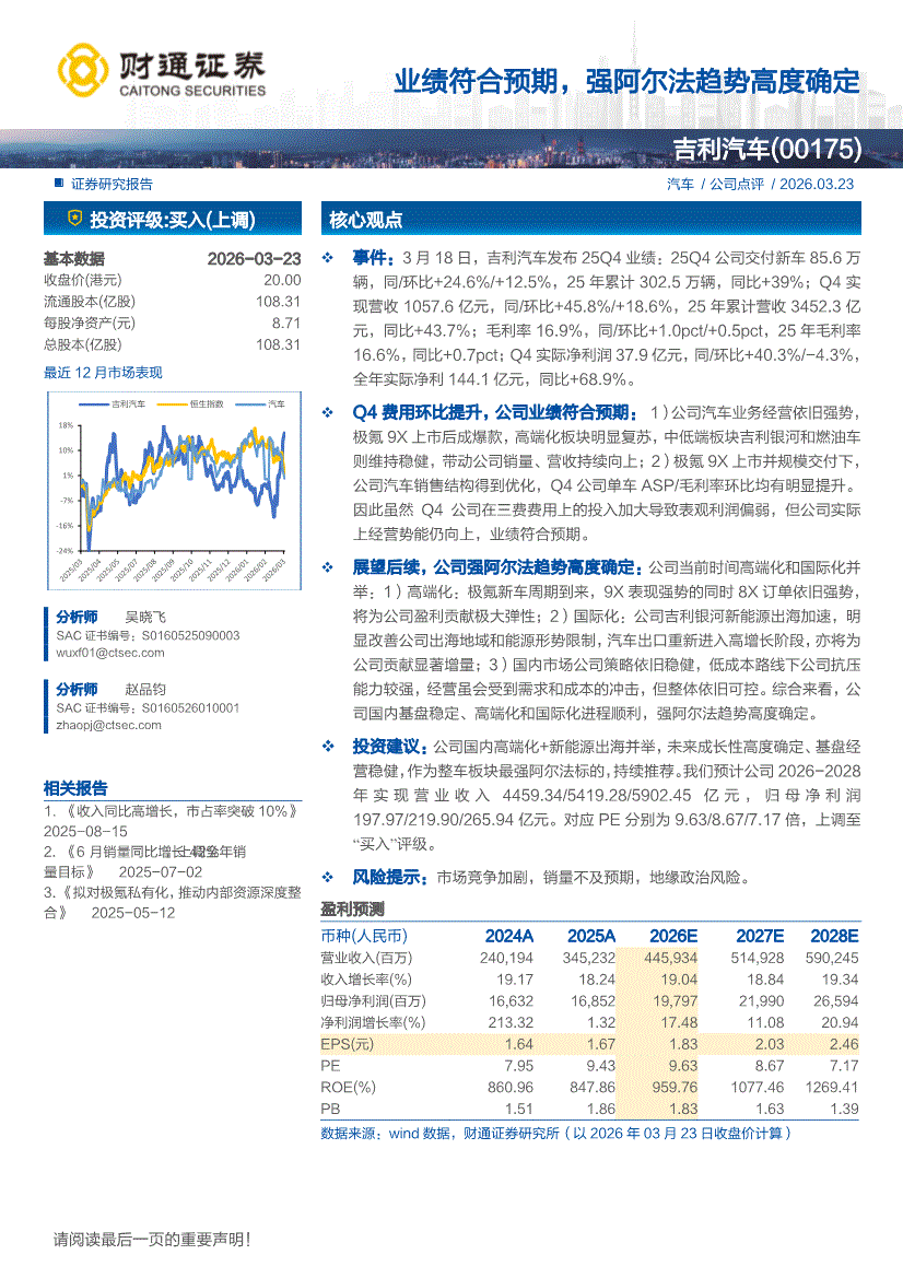 吉利汽车:财通证券-吉利汽车-0175.HK-业绩符合预期,强阿尔法趋势高度确定-260323