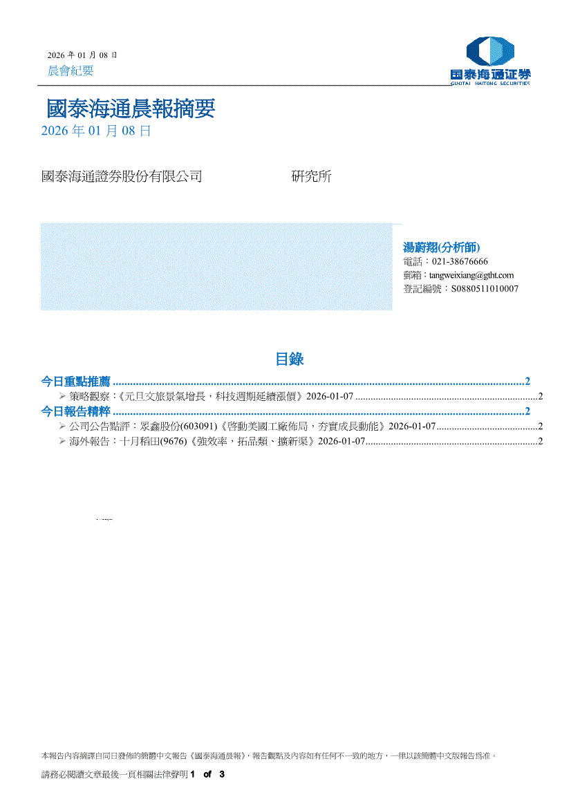 国泰海通证券-晨报摘要-260108