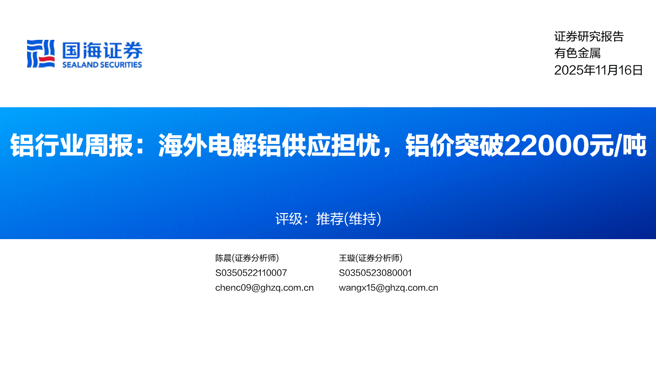 铝行业:国海证券-铝行业周报:海外电解铝供应担忧,铝价突破22000元/吨-251116