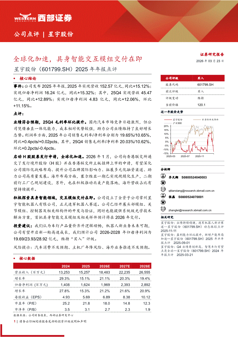 星宇股份:西部证券-星宇股份-601799-2025年年报点评:全球化加速,具身智能交互模组交付在即-260323