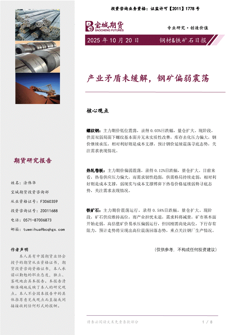 宝城期货-钢材&铁矿石日报:产业矛盾未缓解,钢矿偏弱震荡-251020