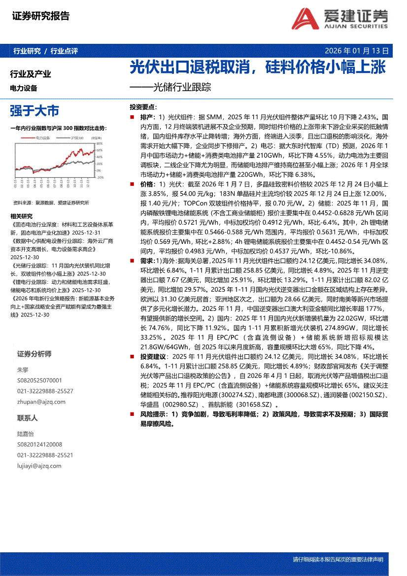 光储行业:爱建证券-光储行业跟踪:光伏出口退税取消,硅料价格小幅上涨-260113