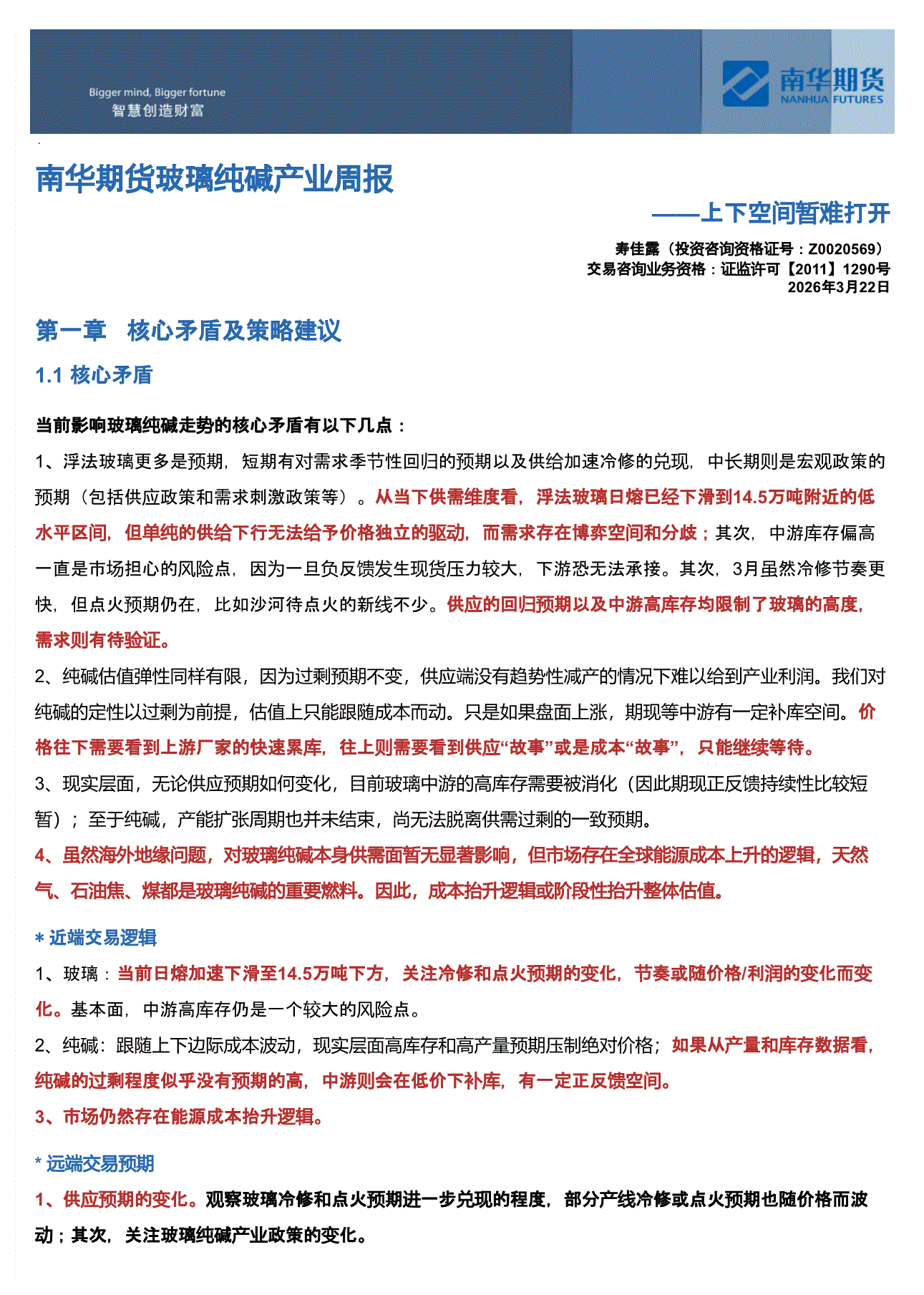 南华期货-玻璃纯碱产业周报:上下空间暂难打开-260322