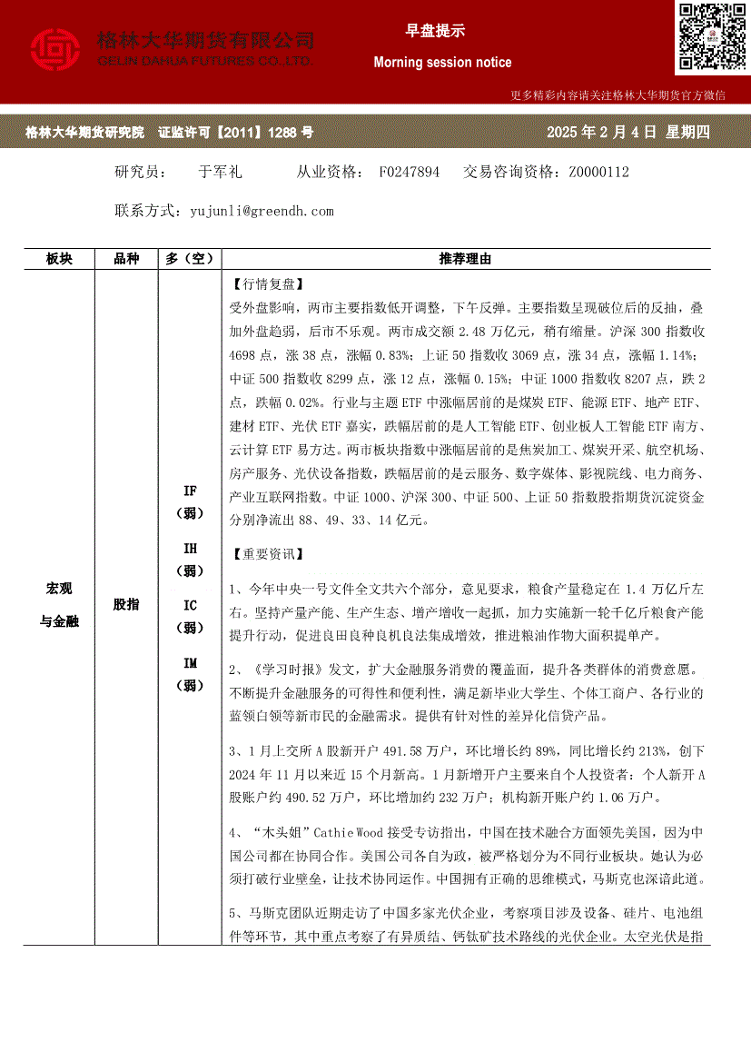 格林大华期货-早盘提示:股指-260204