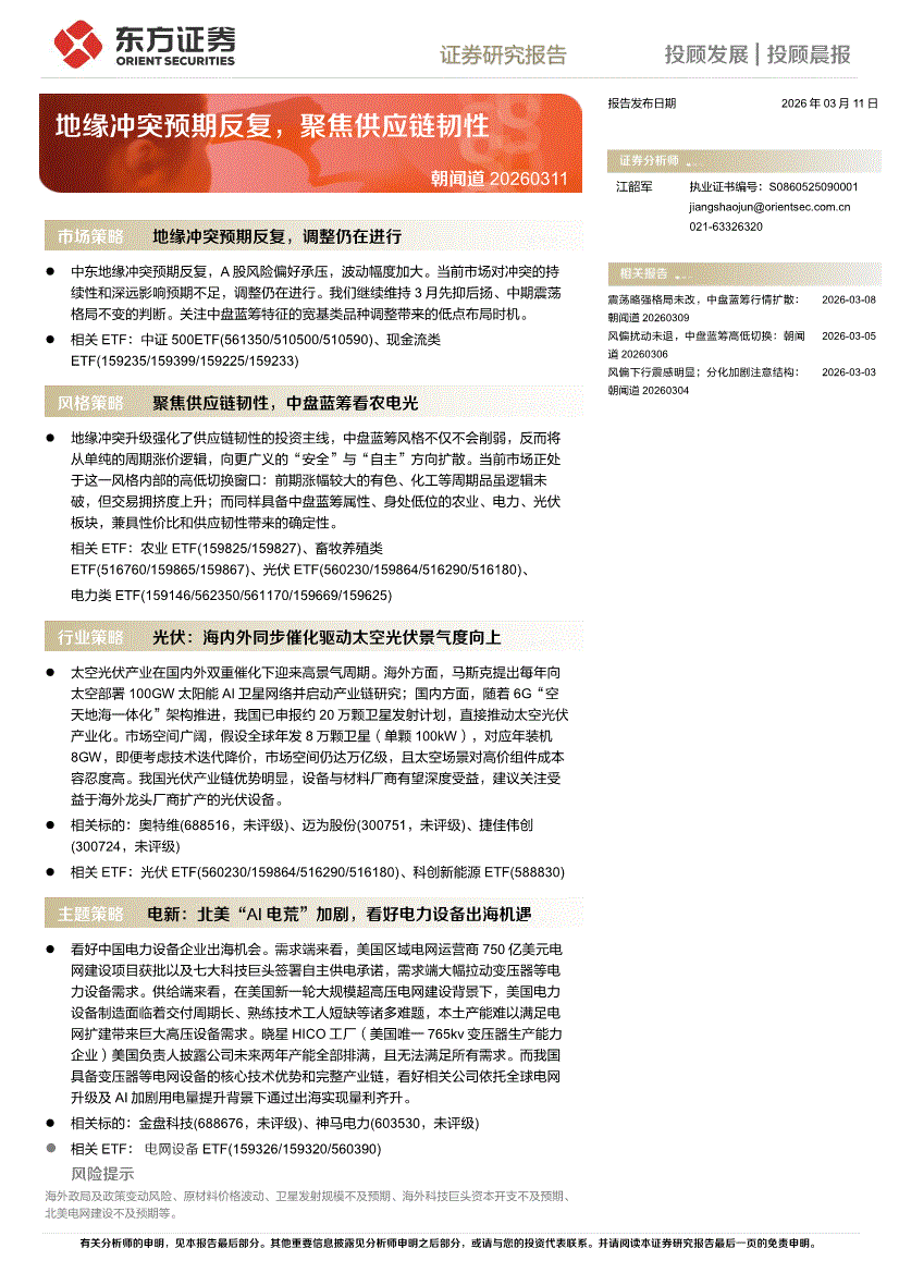 东方证券-朝闻道:地缘冲突预期反复,聚焦供应链韧性-260311