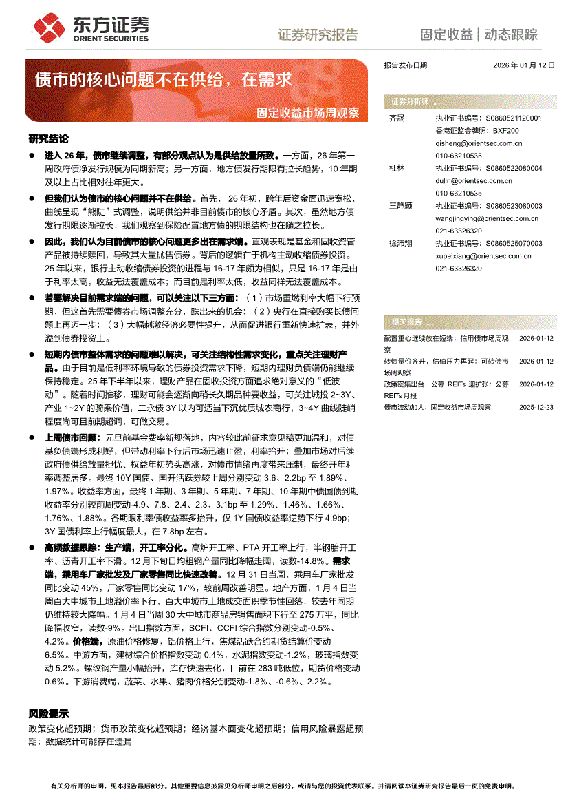 东方证券-固定收益市场周观察:债市的核心问题不在供给,在需求-260112
