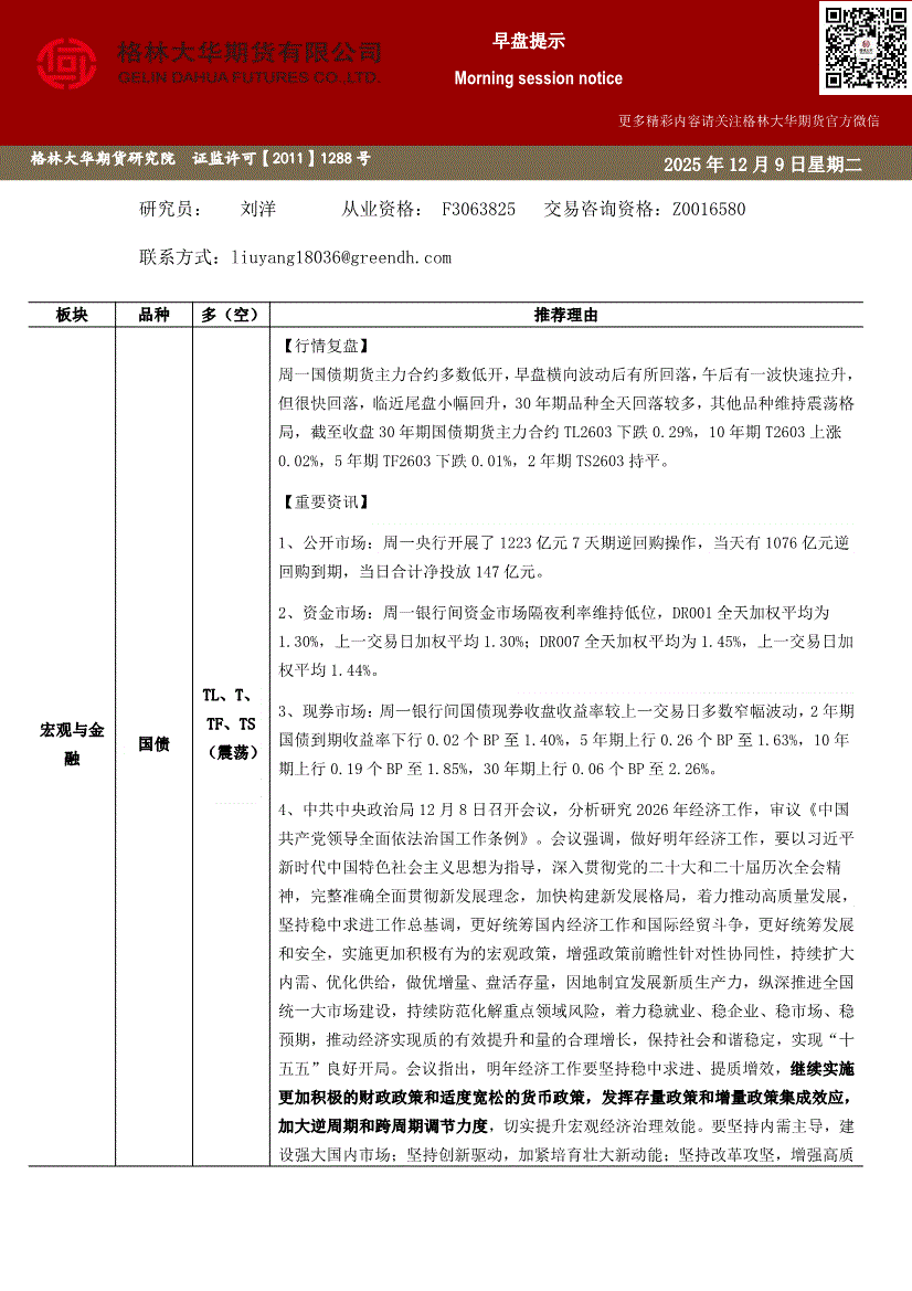 格林大华期货-市场快讯:中央政治局会议确定2026年政策基调-251208
