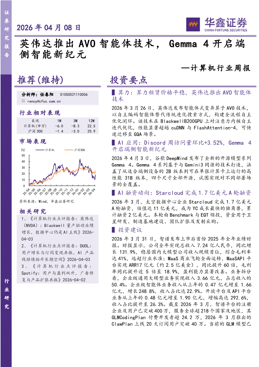计算机行业:华鑫证券-计算机行业周报:英伟达推出AVO智能体技术,Gemma 4开启端侧智能新纪元-260408