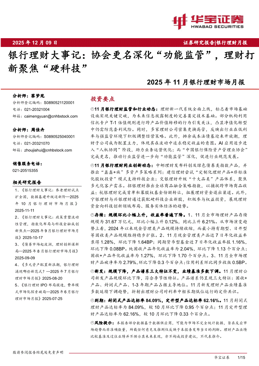 银行业:华宝证券-2025年11月银行业理财市场月报:银行理财大事记,协会更名深化“功能监管”,理财打新聚焦“硬科技”-251209