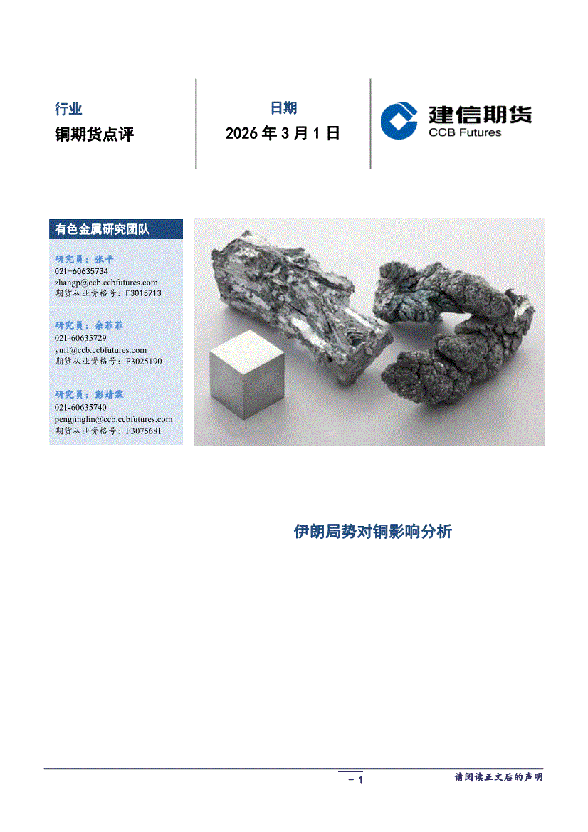 建信期货-铜期货点评:伊朗局势对铜影响分析-260301