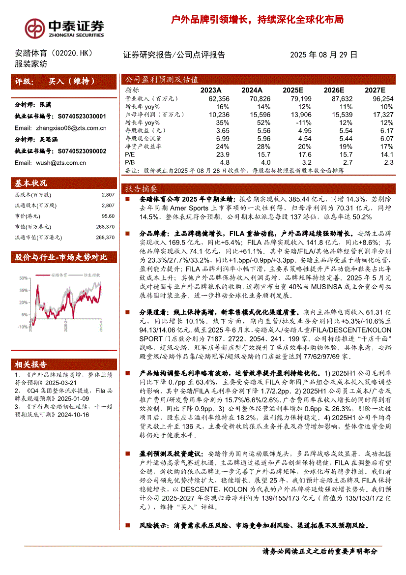 安踏体育:中泰证券-安踏体育-2020.HK-户外品牌引领增长,持续深化全球化布局-250829