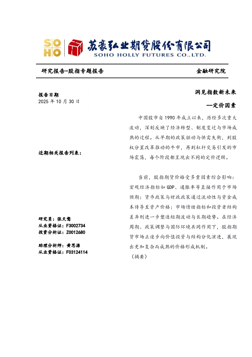 弘业期货-股指专题报告:洞见指数新未来,定价因素-251030