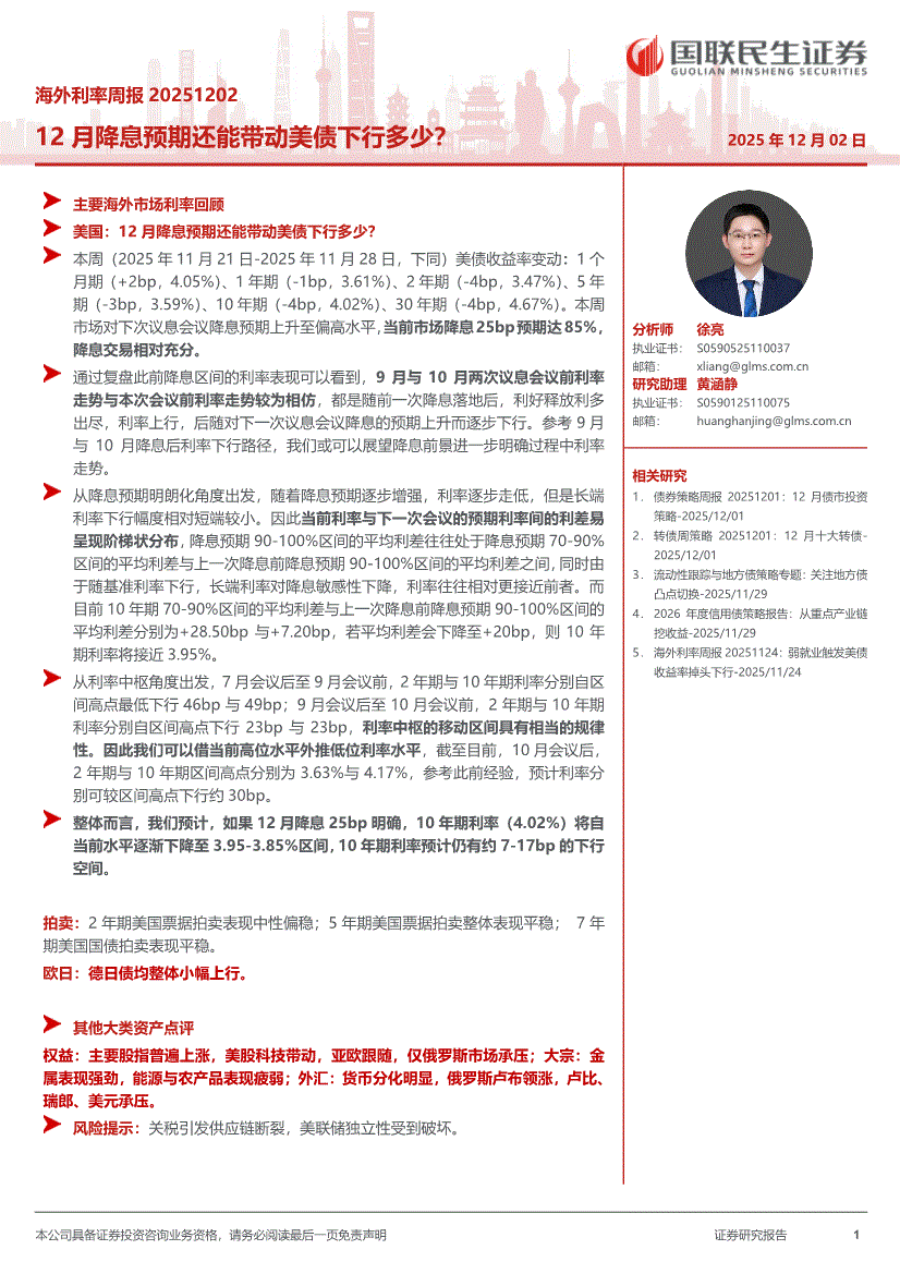 国联民生证券-海外利率周报:12月降息预期还能带动美债下行多少?-251202