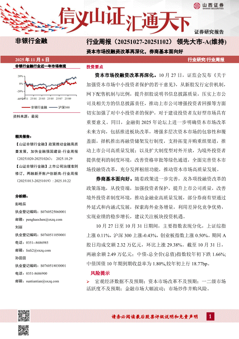 非银行金融行业:山西证券-非银行金融行业周报:资本市场投融资改革再深化,券商基本面向好-251106