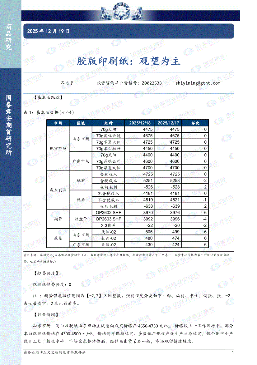 国泰君安期货-胶版印刷纸:观望为主-251209