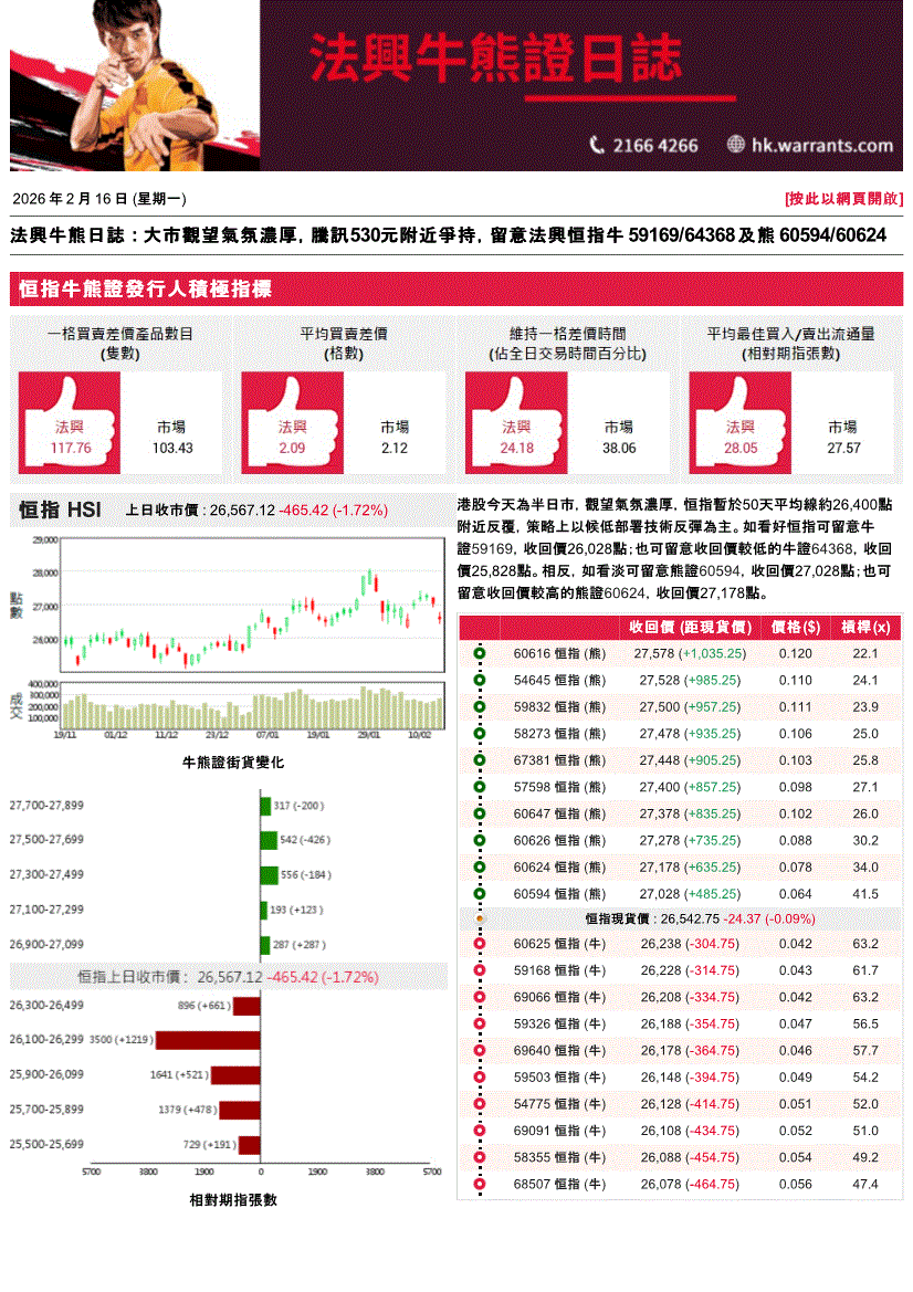 法兴证券(香港)-法兴牛熊证日志-260216