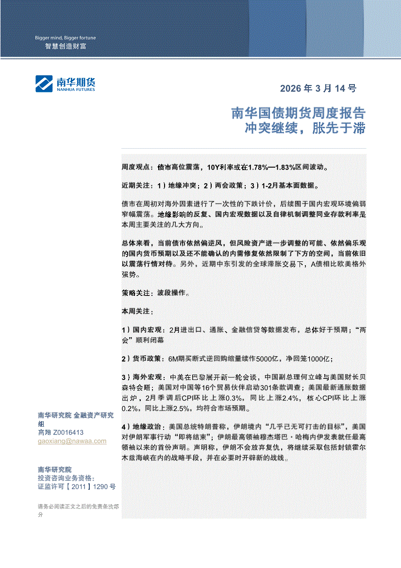 南华期货-国债期货周度报告:冲突继续,胀先于滞-260314