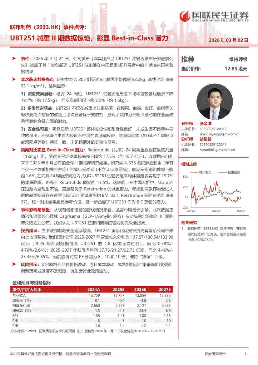 联邦制药:国联民生证券-联邦制药-3933.HK-事件点评:UBT251减重II期数据惊艳,彰显Best~in~Class潜力-260302