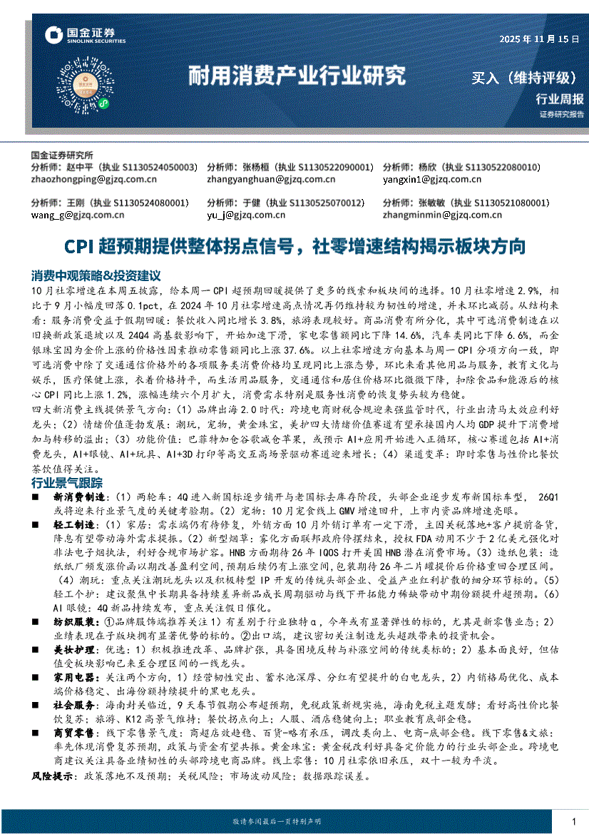 耐用消费产业行业:国金证券-耐用消费产业行业周报:CPI超预期提供整体拐点信号,社零增速结构揭示板块方向-251115