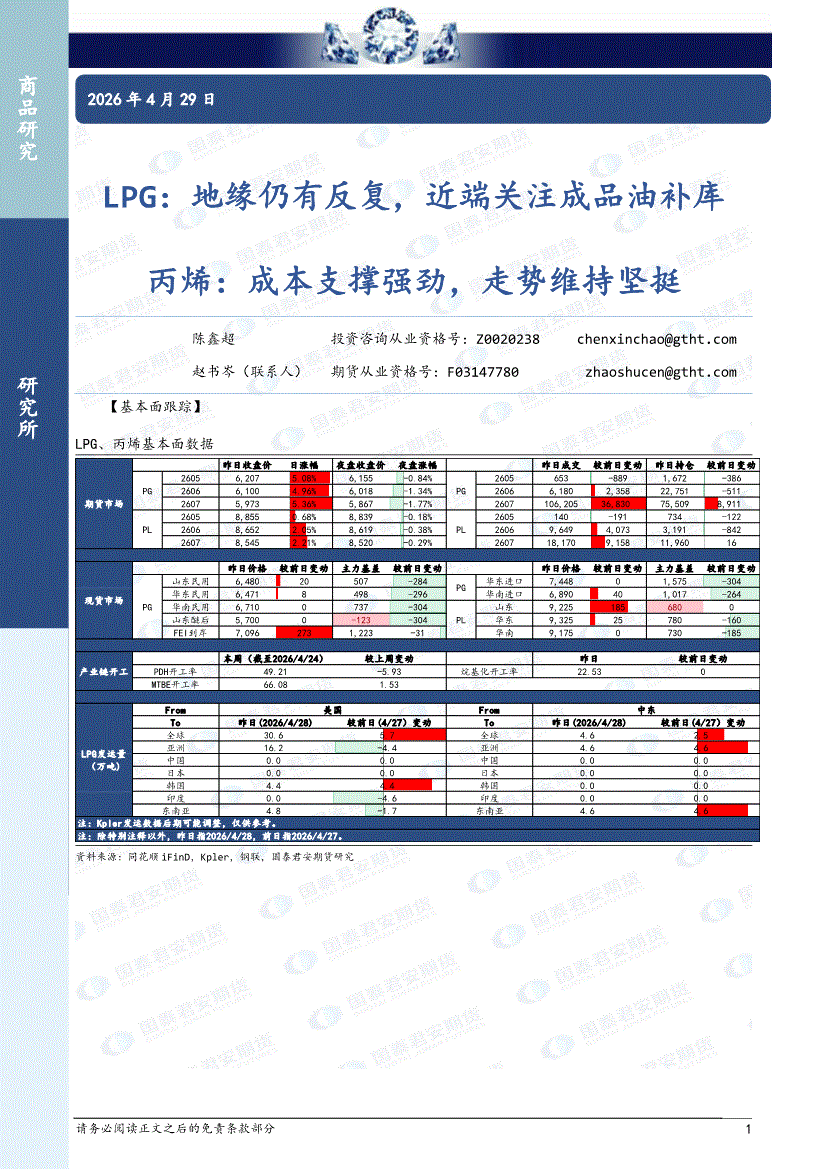 国泰君安期货-LPG:地缘仍有反复,近端关注成品油补库,丙烯,成本支撑强劲,走势维持坚挺-260429