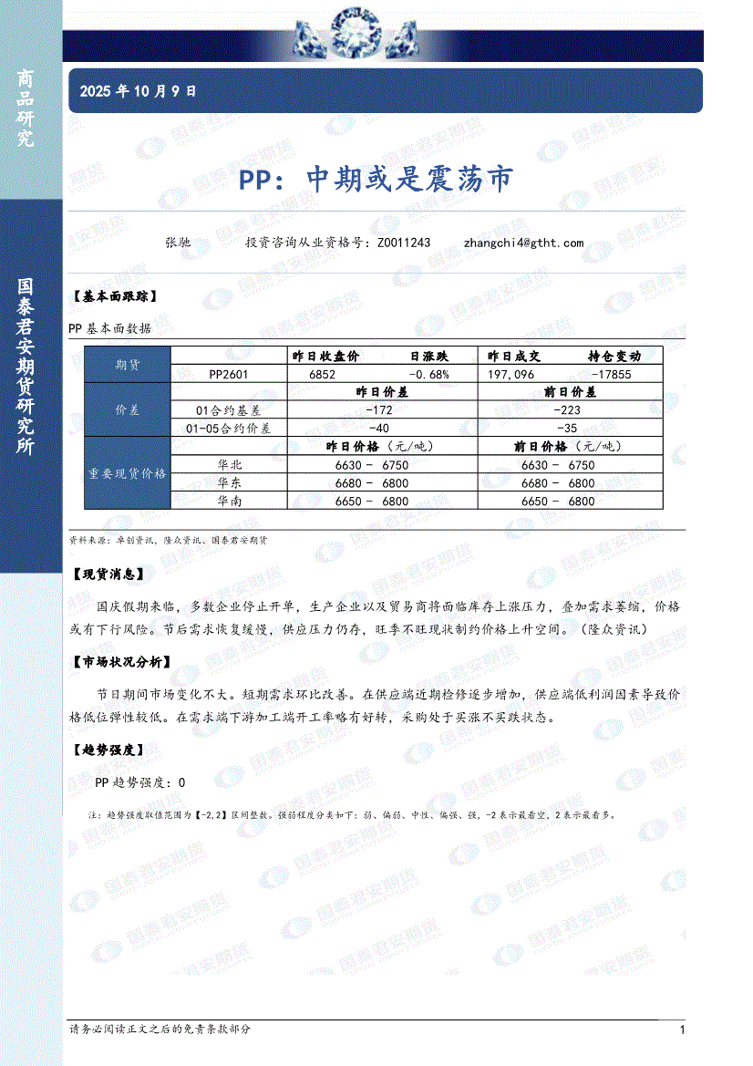 国泰君安期货-聚烯烃:趋势偏弱-251012