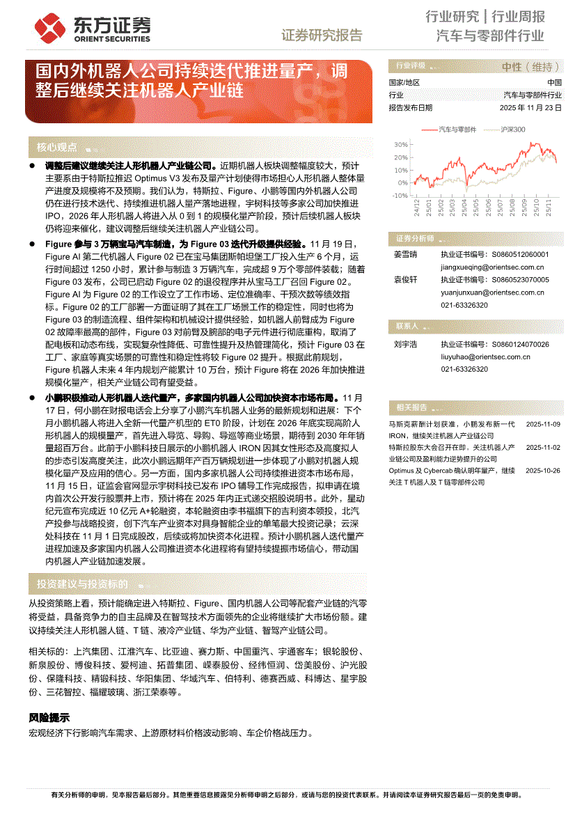 汽车与零部件行业:东方证券-汽车与零部件行业周报:国内外机器人公司持续迭代推进量产,调整后继续关注机器人产业链-251123