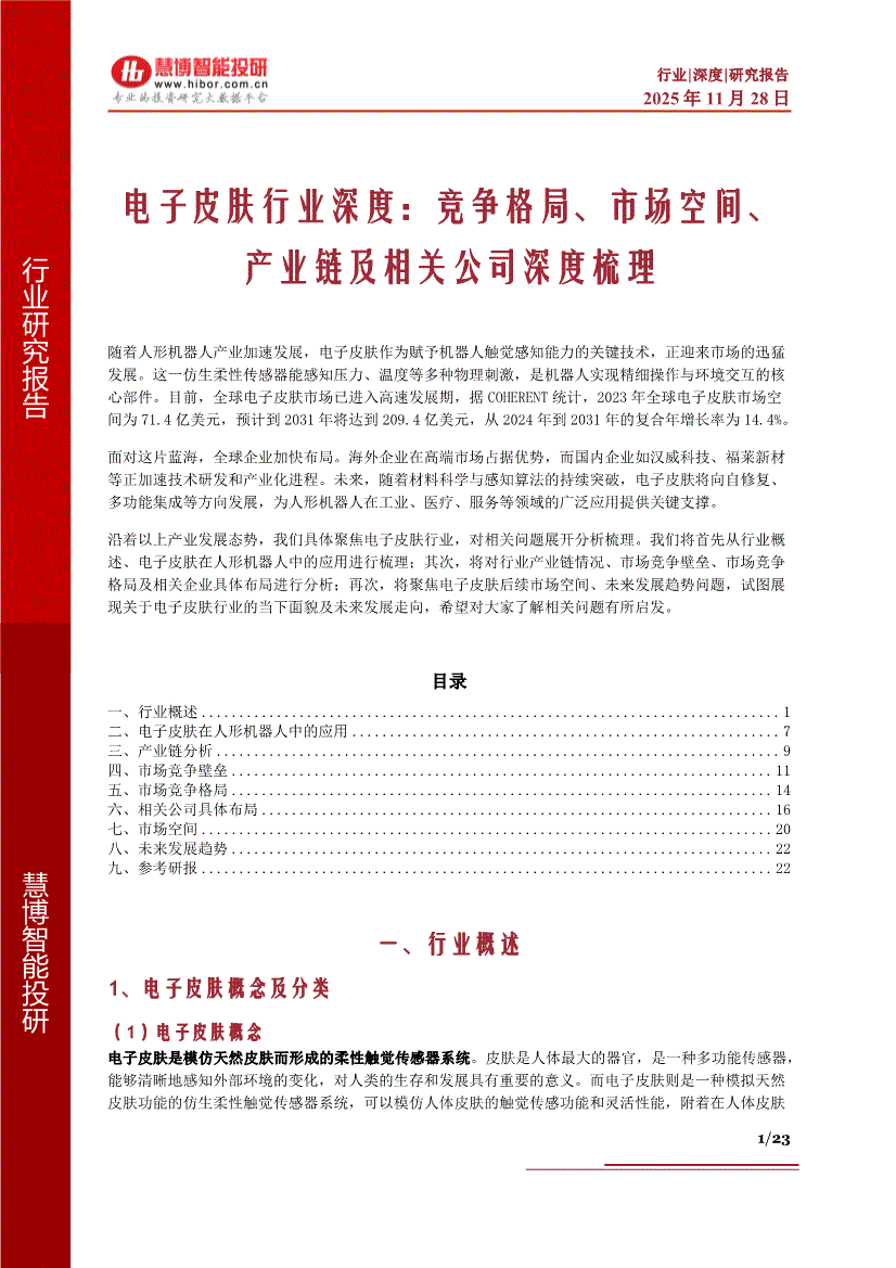 电子皮肤行业:慧博智能投研-电子皮肤行业深度:竞争格局、市场空间、产业链及相关公司深度梳理-251128