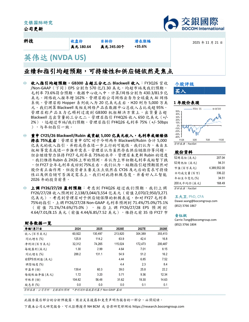 英伟达:交银国际-英伟达-NVDA.US-业绩和指引均超预期,可持续性和供应链依然是焦点-251121