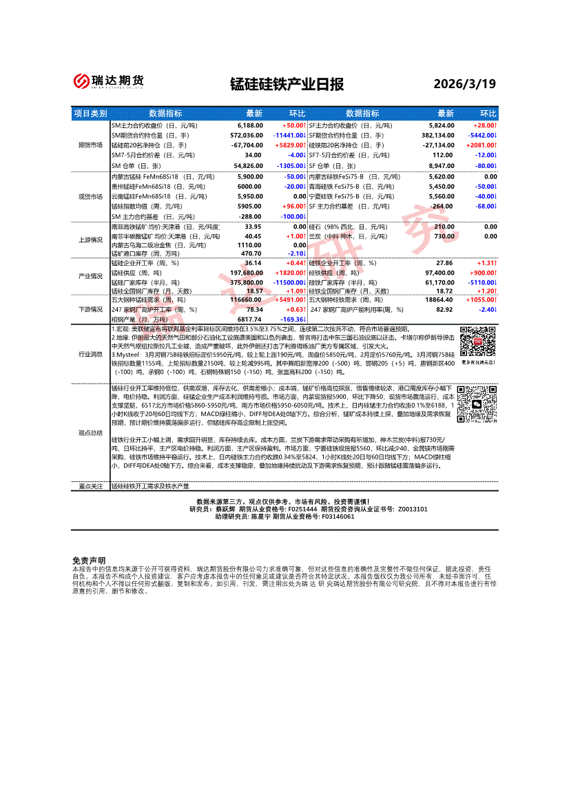 瑞达期货-锰硅硅铁产业日报-260319