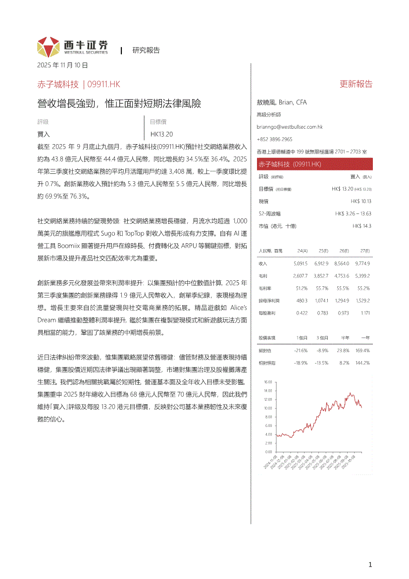 赤子城科技:西牛证券-赤子城科技-9911.HK-營收增長強勁,惟正面對短期法律風險-251110