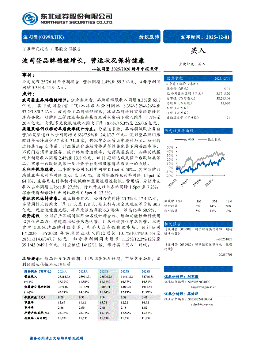 波司登:东北证券-波司登-3998.HK-2025/2026财年中报点评:波司登品牌稳健增长,营运状况保持健康-251201
